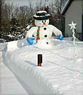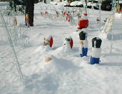 Now that it is Mid-January, I can say I doubt our decorations will be removed from the lawn until sometime in March or April, since we had about ½" of ice on New Year's Day, to really coat all the decorations into the snowpack, and I'm sure not going to be pulling them out of the snow now and destroying the wiring... Have to wait until the snow melts now... Just to give you an idea, here are how things look this morning (1/19/03):