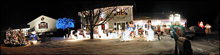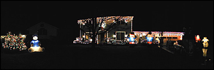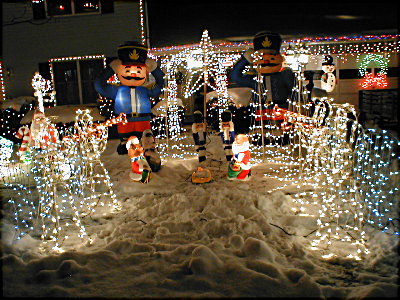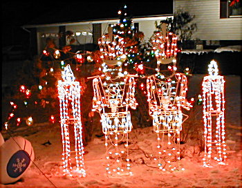 Overall, I guess I added a paultry 1,670 lights to the display today, but the blow molds sure help fill up the lawn with light. The new grand total of lights is now 10,978. I still have a couple trailer loads of decorations to bring home from work, so still lots to add to the total....