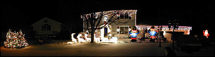 Started the Christmas Decorating today. This year is much different weather than last year, at least so far... Awoke to clear to partly cloudy skies and temperatures in the mid-40's. Here's a panoramic picture of what things looked like when I started: